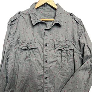 AllSaints Mens Size XL Amhurst Gray Floral Snap Front Shirt Collared