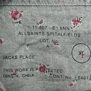 AllSaints Mens Size XL Amhurst Gray Floral Snap Front Shirt Collared Cottage