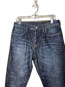 AllSaints Mens size 32 x 32 Rigg Fit Blue Button Fly Straight Leg Denim Jeans