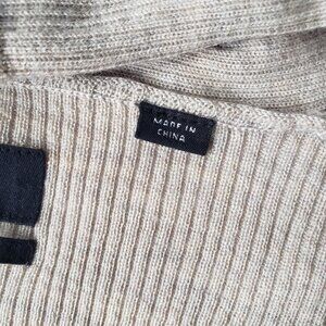 AllSaints Merino Wool Open Front Shawl Collar Beige Ramskull Mode Cardigan Size L.
