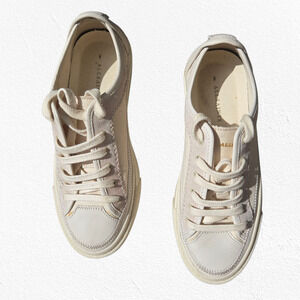 AllSaints Milla Cream Leather Canvas Low Top Platform Sneakers Size 6M / EU 36