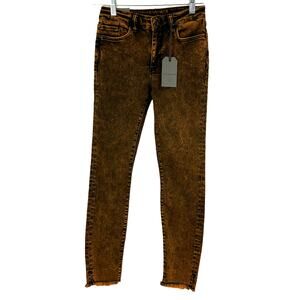 AllSaints NWT Miller Size Me Orange Acid Wash Jeans Size S Mid Rise Skinny Fray
