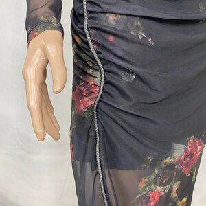 AllSaints Nora Floral Sparkle Mesh Dress • Size 8 • Mortem Black