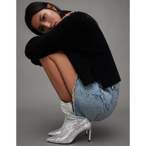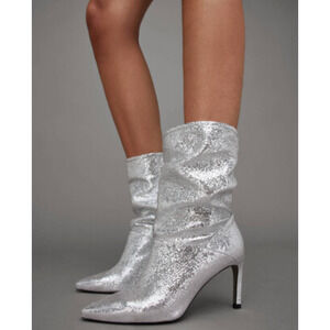AllSaints Orlana Sequin Boots 5 NWOT Silver Gray Slouch Ankle Booties Cocktail