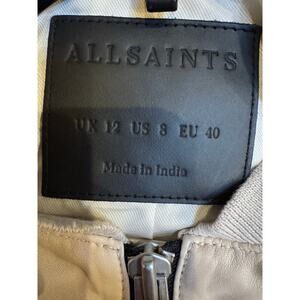 AllSaints Orten Leather Bomber Jacket - Onyx White - US 8 (New No Tags)