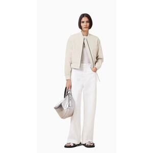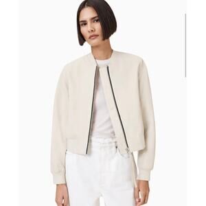 AllSaints Orten Leather Bomber Jacket - Onyx White - US 8 (New No Tags)