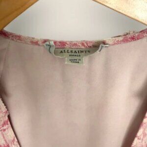 AllSaints Pink Floral Wrap Dress Size Small Ruffle Hem