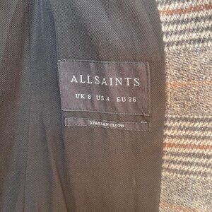 AllSaints Plaid Wool Overcoat, Size 4, Excellent Condition