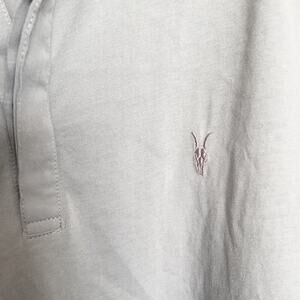 All Saints Polo Cotton Shirt Button Embroidered Large Gray Classic Staple