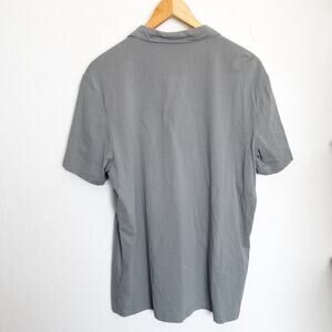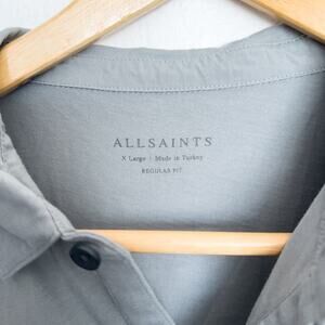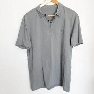 AllSaints Polo Cotton Slim Shirt Button Embroidered Large Gray Classic Staple