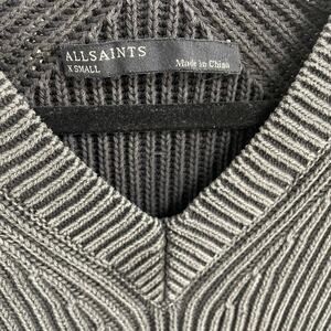 AllSaints Quinta V Neck Sweater Distressed Black Pure Cotton Knit Womens XS