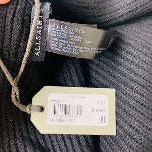 AllSaints Rib Knit Merino Wool Scarf One Size Black AS200006-001