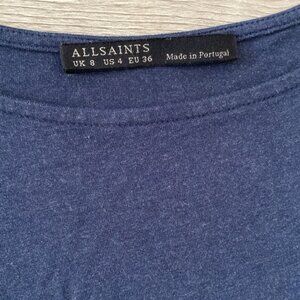 AllSaints Sabie Dress Womens 4 Blue Heather Cap Sleeve Ruching Portugal $140