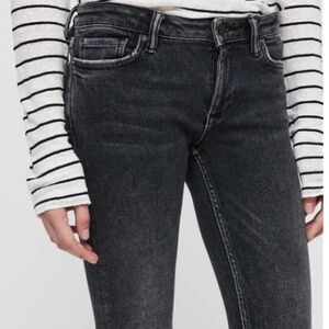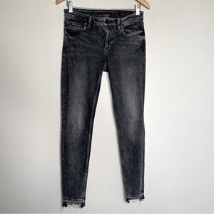 AllSaints Skinny Jeans W28 Raw Hem | Washed Black Stretch Mid Rise Ankle Denim