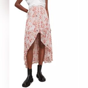 AllSaints Slvina Momo Asymmetrical Floral High-Low Skirt Size 12