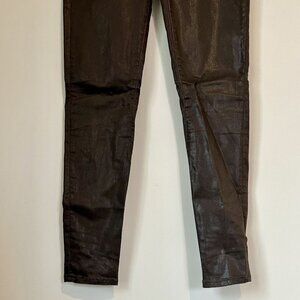 AllSaints Spitalfields Chocolate Brown Wax Coated Zipper Skinny Jeans - Size 27