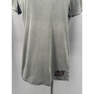 AllSaints Spitalfields Shirt Womens Small Gray V-Neck Eyelet Distressed Raw Hem