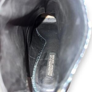 Brand: AllSaints Spitelfield Black Iridescent Snakeskin Emboss Leather Booties