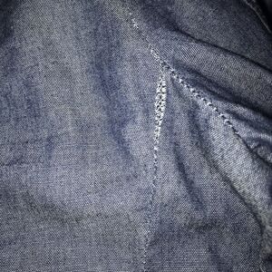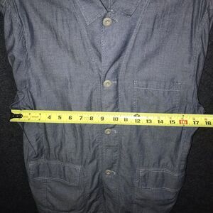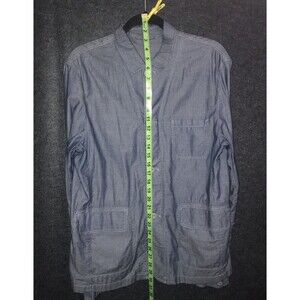 All Saints Thirty Eight Lightweight Renfield Jacket Chambray Denim Like Buttons* Chore style. Size tag not found, according to the allsaints website, the pit to pit measurement shows 18 ", so overall chest size is 36. So appears to fit like a small.