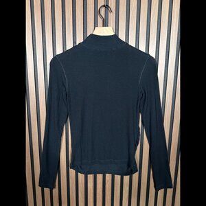 AllSaints Top Small Womens Gray Soft Ribbed Mock Neck Long Sleeve Ram Skull