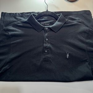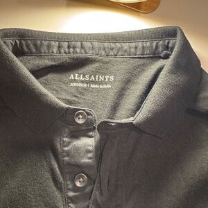 This AllSaints Vidal Short Sleeve Polo shirt is in good condition. Pre-owned. Youth/Teen size Medium; its color is black. For detailed condition please see the photos to ensure satisfaction.