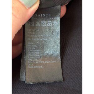 Elevate your wardrobe with this AllSaints Baye coat, blending timeless elegance with modern tailoring. Its wool-rich fabric ensures warmth and sophistication, while the navy tone suits versatile styling.