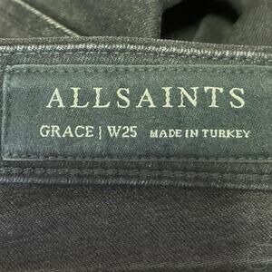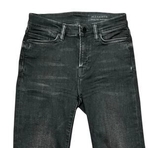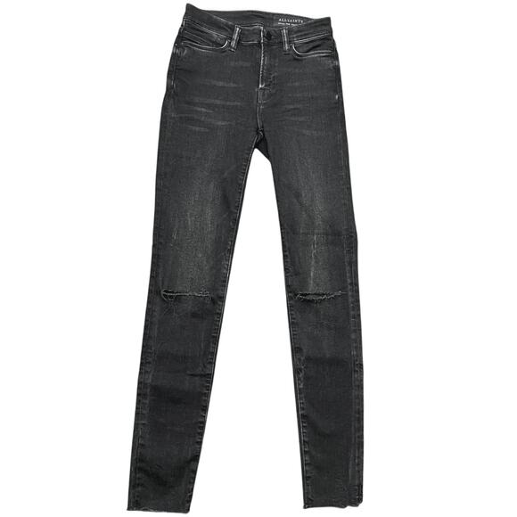 AllSaints Women's Grace Slashed Black Skinny Mid Rise Distressed raw Hem Denim Jeans 25