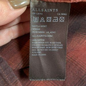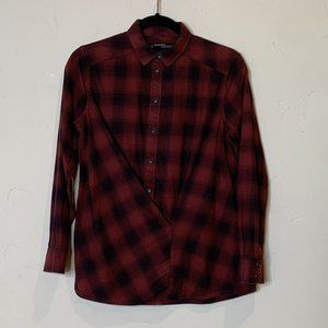 AllSaints Women's Size 4 Red Black Snap Cross Body Layer Flannel Long Sleeve Top