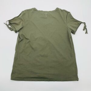 Elevate your style with this chic olive green V-neck top. Featuring stylish tie sleeves, it's perfect for any occasion.