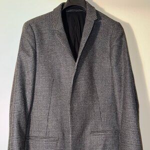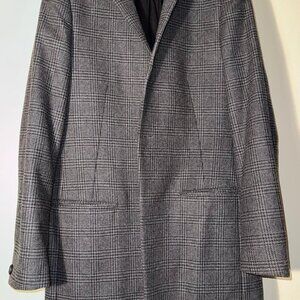 AllSaints Wool Topcoat – Glenplaid Grey, Size 42R (M/L)