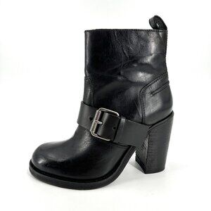 AllSaints Zadie Black Leather Buckle Biker Round Toe Heeled Zipper 8 Ankle Boot