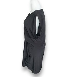 AllSaints Zoe Yuano Black Draped Short Sleeve Scoop Neck Split Shoulder Mini