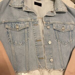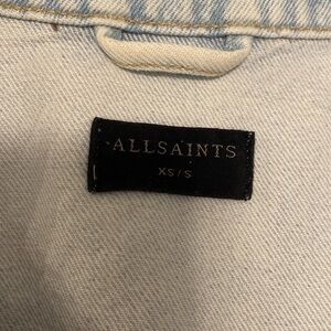 All Saints crop jean jacket with sweatshirts sleeves size extra small/small