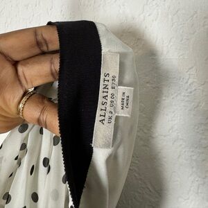 AllSaints pleated polka dot skirt.