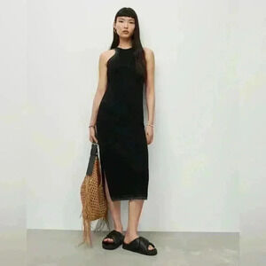 AllSaints Mako Embroidered Crochet Trim Midi Dress