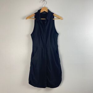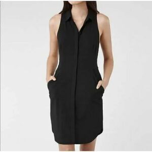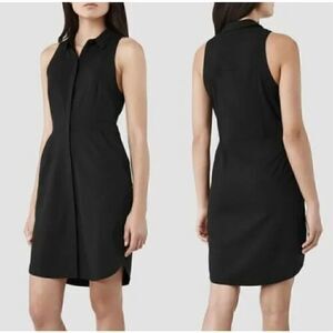 Original AllSaints Mel Shirt Dress - Italian Cloth with Virgin Wool - Collard Neckline -Hidden Button Down Front Closure - 2 Side Pockets - Split & Rounded Hem - Sleeveless - Size 2 US- Color Black