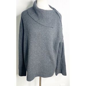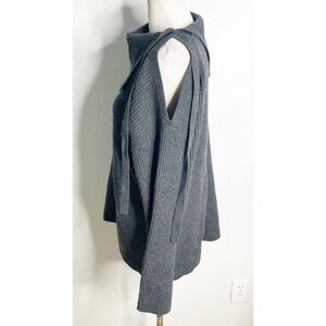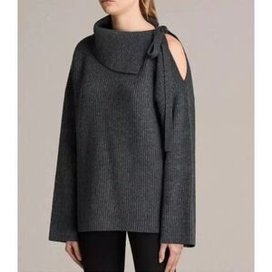 AllSaints Sura Tie Neck Open Shoulder Wool Blend Dark Grey Sweater Medium
