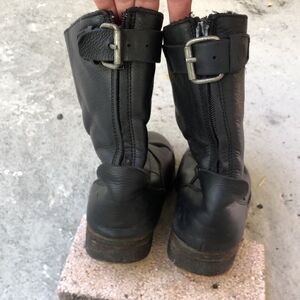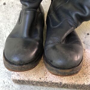 Wright leather boots that I am going to call fleece line because I’m not sure what the material is. They need a good polish and the back heel taps replaced but not urgent. Please look at the pictures. Shaft height is 7.5 inches width is 6 inches.