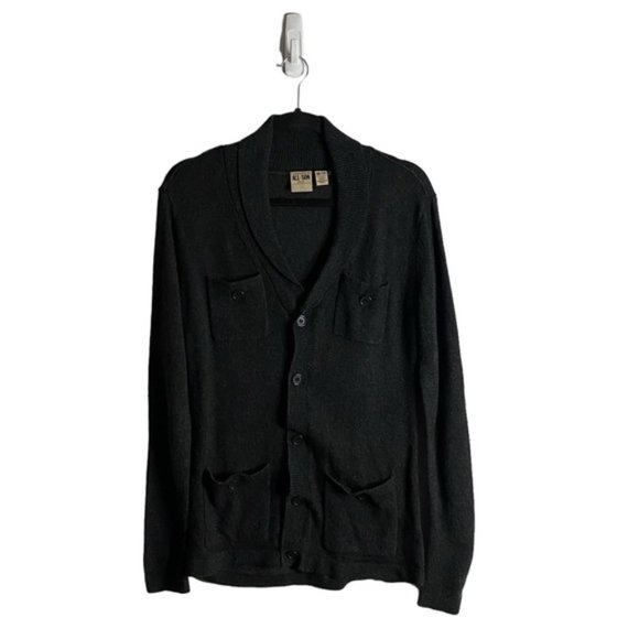 All-Son Men's Charcoal Gray Button-Down Wool Knit Cardigan