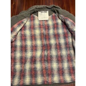 For sale is a rugged All-Son men’s olive green utility vest in size Small. This workwear-inspired vest is built with durable cotton canvas and features a cozy plaid flannel lining for warmth and comfort.