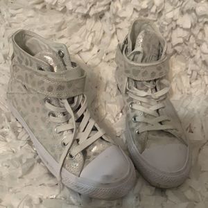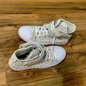 All Star Converse | White and Silver Converse uppers | animal print | size 7 | soil at sole and few areas that can be easily cleaned.