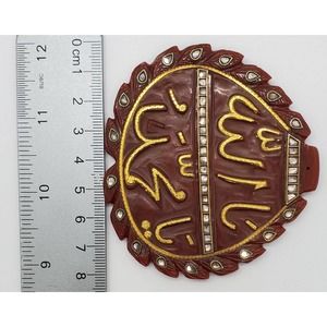Outstanding Vintage Coral Stone Pendant with Allah scrips ( Ya Allah Ya Mohammad ) Written with 24KT Yellow Gold . Height Width 7.4 Cms Width 8.0 Cms