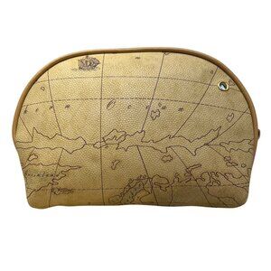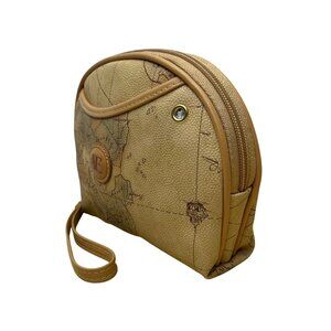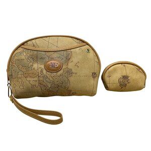 Allan Edward Beige World Map Faux Leather With Small Pouch Wristlet Set