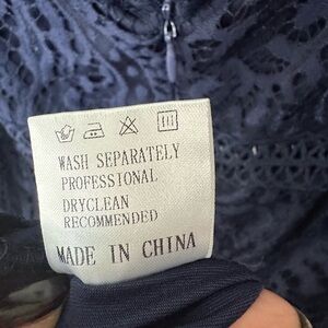 Allanwell Dark Blue Floral Lace V Neckline Midi Bodycon XL Cocktail Dress
