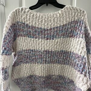 This Allard State sweater, with its textured knit and multicolor striped pattern, offers a stylish and comfortable fit. Made from a blend of polyester and acrylic, it's designed for durability and warmth. Suitable for both casual and semi-formal occasions, it pairs well with various outfits.