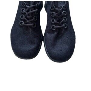 The Allbirds Size 9 Dasher Natural Black sneakers are a stylish and comfortable option for active women. Made with a soft wool lining and knit upper, these lace-up shoes are perfect for winter, fall, or spring activities like gym training, walking, or jogging. The solid black color and nature-inspired theme make them a versatile choice for outdoor or indoor workouts. With a durable rubber outsole and the Allbirds brand reputation for quality, these athletic shoes are a great addition to any woman's wardrobe.