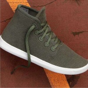 Step into comfort with these Allbirds Wool Tree Topper sneakers in the Kauri Fiddle-Leaf colorway with a clean white sole. Crafted from merino wool, these high-top sneakers offer a soft, cozy feel while remaining breathable and temperature-regulating—perfect for year-round wear. The lightweight design and cushioned insole provide exceptional comfort for everyday activities.