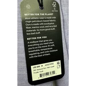 Allbirds Natural Run Mid Layer Tencel 1/4 Zip in Purple Hush Size M. Condition is New with tags.