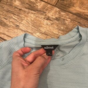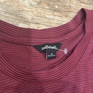 Allbirds Natural Run tee thrive crimson and blue hush medium. Crimson has a small hole on the back. Otherwise they are both in Excellent condition