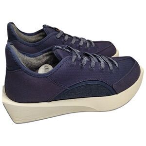 The Allbirds City Riser Sneaker in Hazy Indigo is a Men's shoe that combines sharp angles, accentuated edges, and sustainable materials for an elevated style. The shoe features a 1.25-inch platform and a boxy heel that some say gives the wearer a noticeable boost in height. The shoe is made with a variety of materials, including: